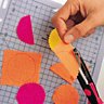 4- Pour le cadre Ganesh, découpez des cercles de 5,5cm dans 3 coloris de papier crêpon fluo, 6 cercles oranges, 6 cercles jaunes et 4 cercles roses, repliez le papier en 2 et découpez les 1/2 cercles avec les ciseaux à cranter.
