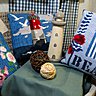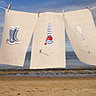 Le thème de la mer classique et raffiné revu par DMC est contemporain par un traité graphique et une palette de couleurs très "Bord de Mer" dans les bleus-gris, un nouvel univers pour DMC qui propose par le même biais des kits sur toile de lin naturel en broderie au point compté, des kits suspension déco en toile aïda de lin et la nouvelle tendance pour séduire les débutantes des coupons pré-tracés pour apprendre les points de base de la broderie traditionnelle .....