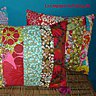 Différentes tonalités et esprit font de ses créations des pièces indispensables à un intérieur chaleureux, il y en a pour tous les goûts…ambiance japonaise fleurie, inspiration Klimt, flashy ou bohème ou simplement en camaïeu d’une couleur. Le fond des coussins est uni, ils sont déhoussables et en coton, mais Monika réalise également d'autres accessoires, des pochettes sont aussi vendues dans le même esprit.