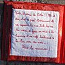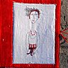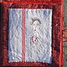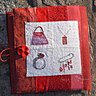 Un livre de 16 pages illustrées, couvertures comprises sur des pages en tissu rouge, les illustrations brodées en piqué libre appliquées sur fond de torchons anciens en toile de lin donnent un résultat très original.