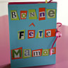 Découpes les lettres nécessaires pour composer ton message, en laissant une petite marge autour. Colles chaque lettre sur un papier de couleur puis découpes les dans des formats différents, en pointe, rectangle ou en carré. Colles les lettres sur la couverture.