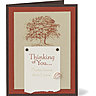 L’arbre imprimé à la sanguine ressort parfaitement sur un papier gris clair, et la superposition de 3 coloris de papier met bien en valeur le motif et le texte imprimé dans la même gamme de coloris de tons chauds.