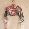 Ce châle a été interprété à sa façon dans 7 coloris doux et tout en harmonie de verts et roses, simplifiant les explications, improvisant et jouant avec les couleurs du coton.