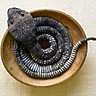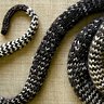 Les pièces tricotées au point jersey ont la particularité d’avoir les bords qui roulent et bien souvent le point jersey est associé à un autre point pour qu’il reste plat, pour ce serpent les bords du tricot recourbés naturellement ont justement donné l’idée de les utiliser à bon escient et le bord roulouté s'est enroulé pour créer le corps de l'animal. La créatrice a ainsi pu fabriquer à plat, avec 2 aiguilles ce tricot à l'aspect tubulaire créant ainsi la forme de l’animal qui ressemble à s’y méprendre à un serpent.