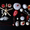 Ghosts bleed dont they ? une mise en scène et luminosité digne des natures mortes des peintres flamands, étoile de mer, oursin, plume écorces et groseilles.