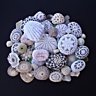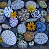 Margaret Oomen amasse et choisit ses galets, pour les recouvrir de points décoratifs au crochet, choisis selon leur forme et leur couleur, elle les enrobe de fils aux couleurs subtiles choisies dans la collection de cotons Valdani teints à la main.
