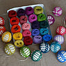 Le kit de 20 mini bobines de laine Einband, permet de réaliser la guirlande Circus, c’est un fil dentelle peigné 100 % pure laine, très agréable à crocheter. Le kit est à commander sur le site de triscote, la spécialiste de la laine islandaise en France. www.triscote.fr/prestashop/crochet/1444-kit-guirlande-circus.html