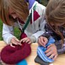 - Piquer la mèche au moyen de l'aiguille à feutrer (attention aux doigts !) et répéter le geste plusieurs minutes jusqu'à ce qu'une fine couche de feutre se forme de part et d'autre du trou.