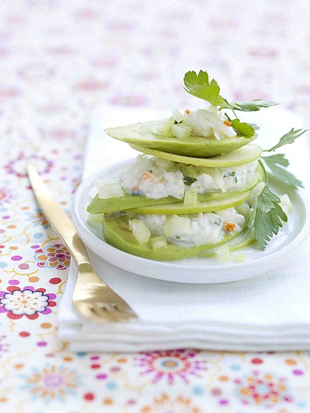 1 bel avocat, du crabe, 2 pommes granny smith,