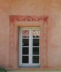 Ces sgraffitis, tout en volutes, réalisés par Martine Moulet (Entreprise calterra à lIsle -Arné dans le Gers), réclament des dessins bien plus élaborés que celui présenté dans notre mise en oeuvre.