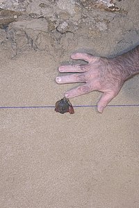 Autre idée, des coquillages et des galets incrustés dans un corps d'enduiten terre, viennent délimiter l'emplacement d'un soubassement coloré et mettent en valeur l'entrée de la maison (Réalisation Vishwan terre ). L'enduit de finition les affleure sans les recouvrir et sans créer de joints, ce qui donne la sensation de profondeur. Ils peuvent alors être laissés tels quels ou vernis. En voici le détail : ![]() |