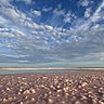 En fin de processus, les derniers bassins ou « tables salantes » sont de très faible profondeur, et permettent ainsi la récolte du sel. Le taux de salinité atteint alors 260 grammes de sel par litre d'eau. La couleur rose intense des bassins, due à la présence d'algues microscopiques rose orangé dans l'eau, se répercute sur les cristaux de sel ; eux-mêmes légèrement rosés